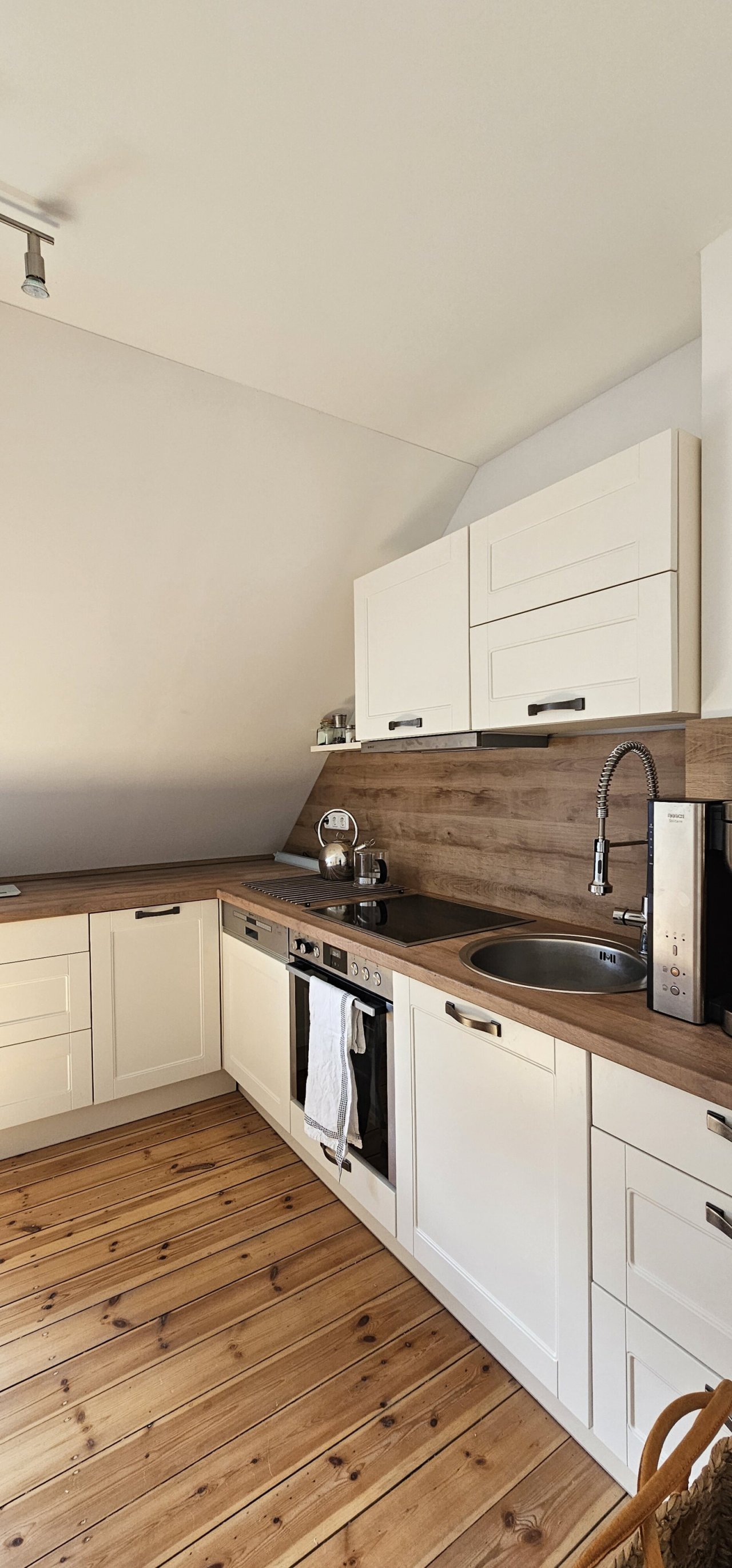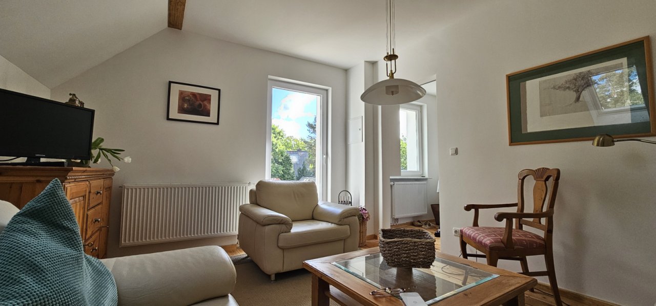 Ausstattung und Modernisierung: Alle Wasser- und Abwasserleitungen, Elektrik, Fenster, Heizung und das Bad im Obergeschoss wurden komplett erneuert. Die Obergeschoss-Fußböden bestechen durch hochwertige Dielen und Fliesen; die Türen wurden erneuert – zwei Glasschiebetüren, zwei weiße Holztüren – und die Eingangstür im Obergeschoss präsentiert sich als stilvolle Holzschiebetür. Die Einbauküche stammt aus dem Jahr 2023 und fügt dem Innenraum eine gepflegte Modernität hinzu.…
